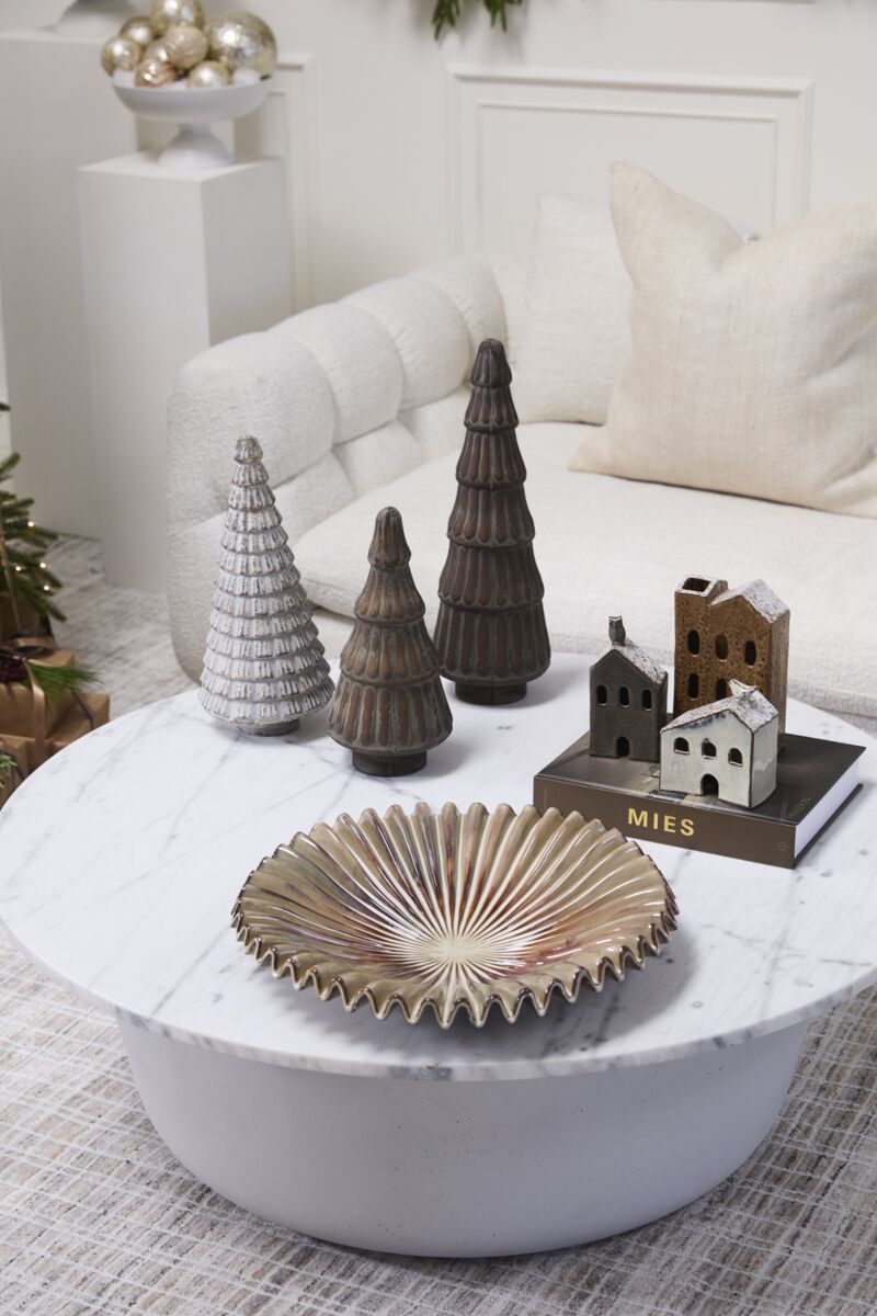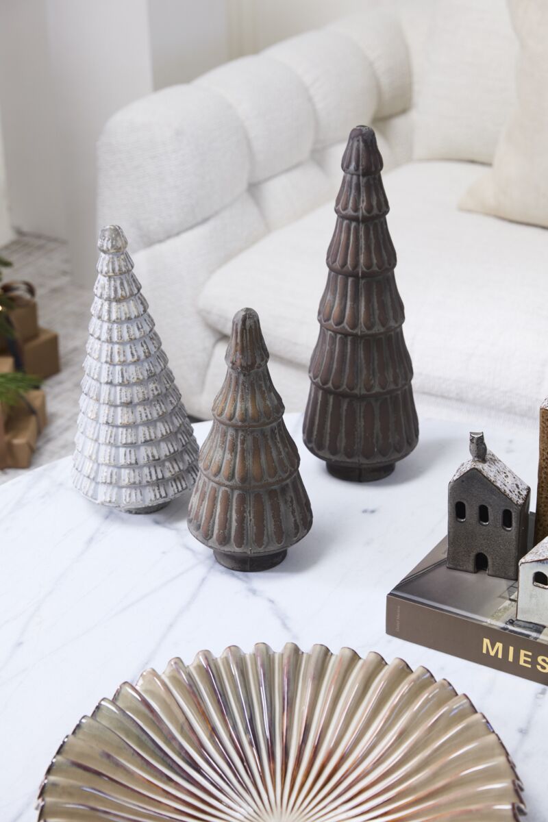 Embrace the frosty, wintry weather by creating a decorative forest of glass trees with the Norway Tree. This sturdy glass tree has tiers of geometric pattern that is highlighted by the surface that's a brushed silver hue with hints of gold. Available in two heights, the silver Norway Tree looks stunning when styled alongside holiday lights and shining metallic decor.