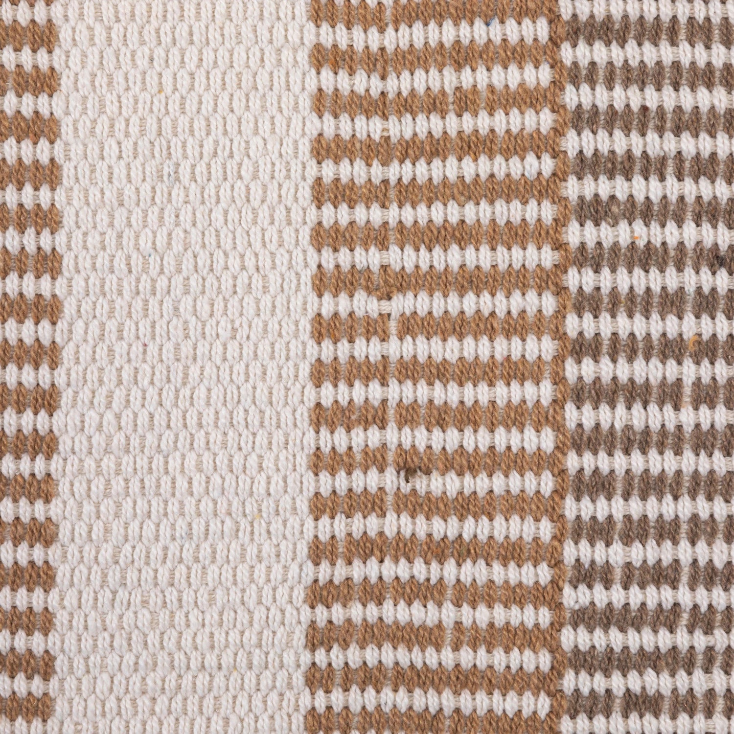close-up woven white blanket with brown stripes