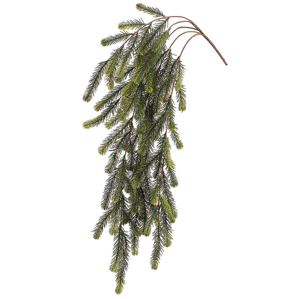 This 34.5" hanging bush brings a natural, evergreen touch to your décor year-round. With its lush, full foliage and realistic coloration, it mirrors the look of freshly trimmed branches from a Christmas tree. Display it in a tall vase to cascade beautifully over the sides as an accent piece, or group multiple stems in a wider vessel for a fuller, statement-making centerpiece.