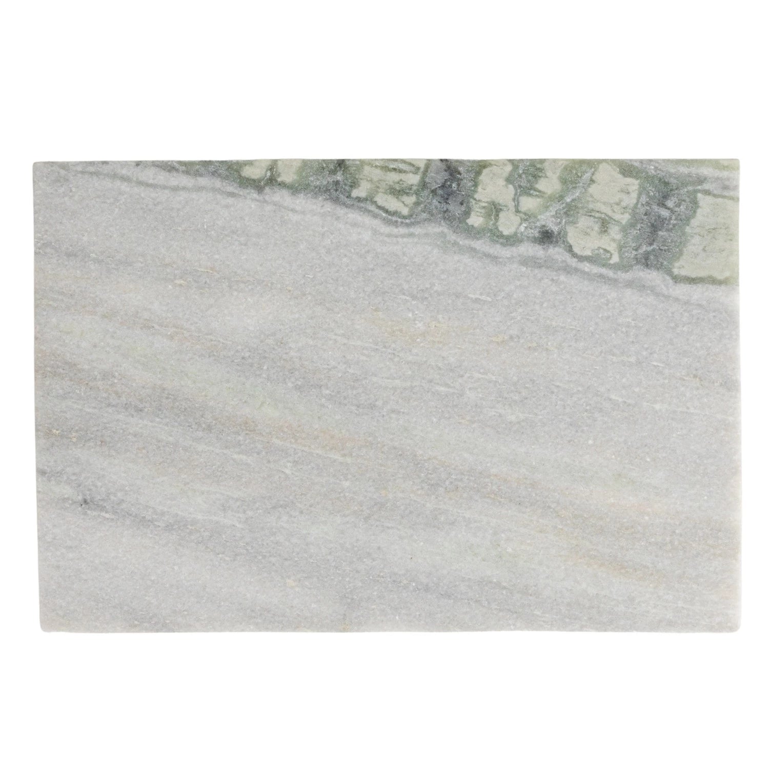This Marble Cheese Cutting Board in black mélange is a testament to tasteful elegance. Its rectangular form is both modern and timeless, fitting effortlessly into a variety of home styles. The black marble not only provides a stunning contrast to the vibrant hues of cheeses and fruits but also offers a durable surface for preparation and serving. It measures 12 inches in length and 8 inches in width, offering a generous canvas for every gastronomic creation. Designed to resonate with modern, boho, and minimalist themes, it stands out as a functional piece of art. The board's size is perfect for intimate gatherings or as a statement piece in a well-curated kitchen.