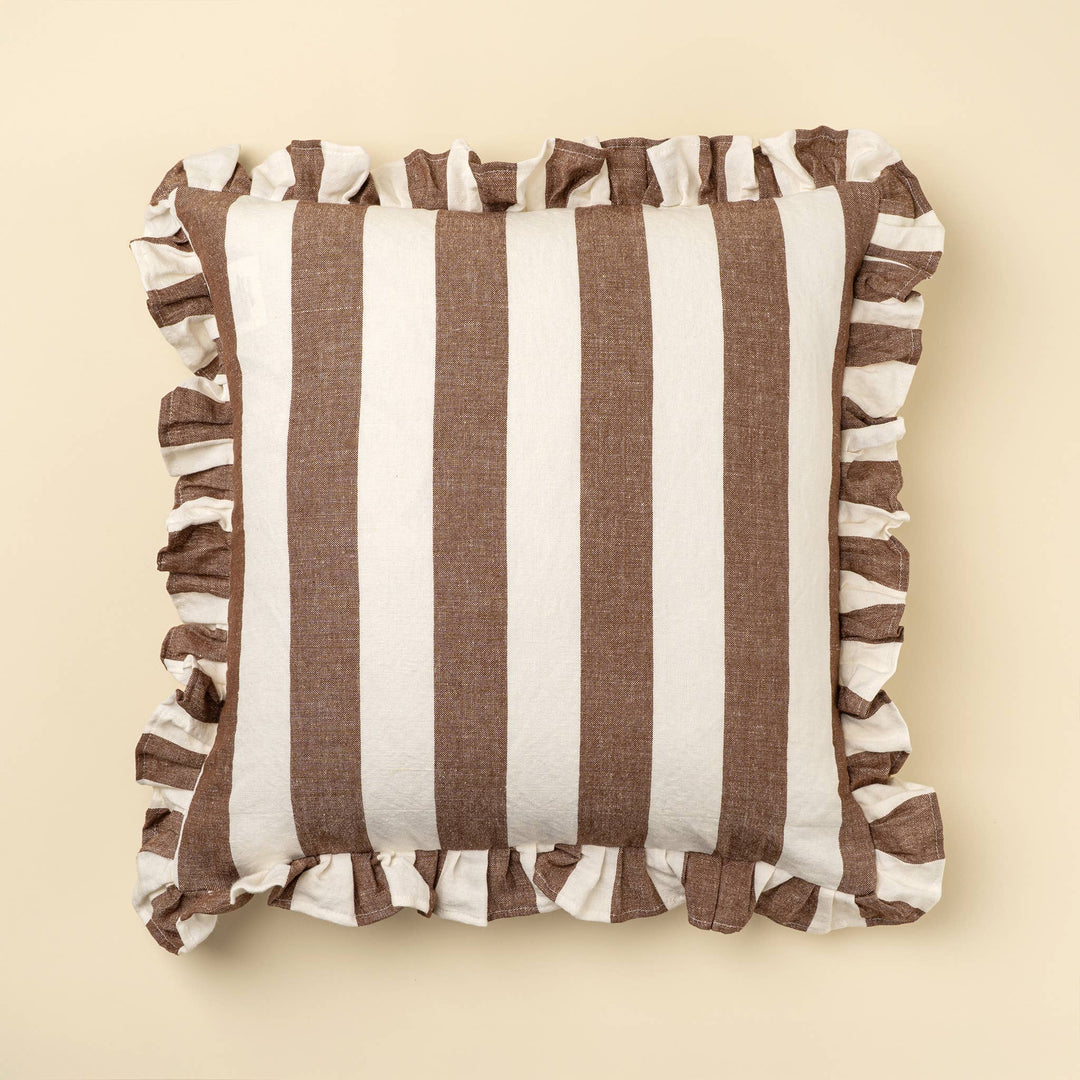 20x20 Ruffle Thick Stripe Pillow, Brown