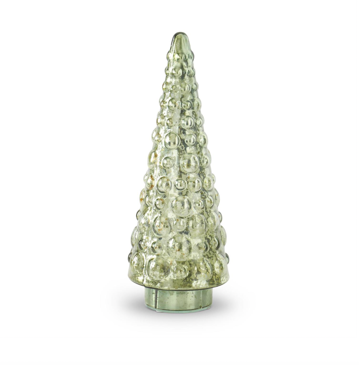 Add a vintage-inspired glow to your holiday décor with this stunning set of Dot-Embossed Green Mercury Glass Christmas Trees. Featuring a soft green hue with a beautifully aged mercury glass finish, these trees bring timeless charm to any space. The delicate dot-embossed texture adds depth and elegance, making them the perfect statement piece for mantels, shelves, or festive table centerpieces.