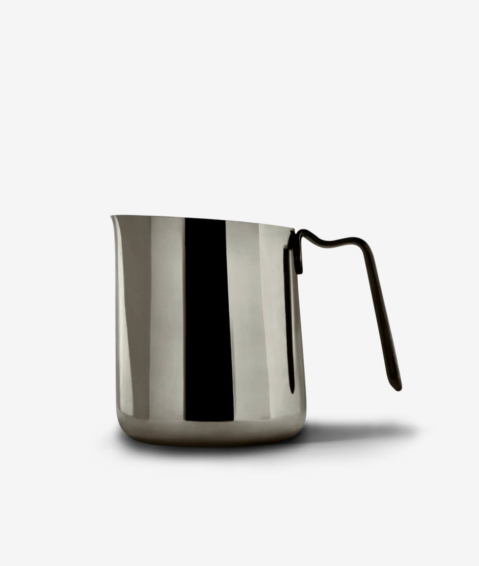 Meet Eddy Steaming Pitcher, the barista's paintbrush for pouring precise latte art. The fluted spout, unique sharp front crease, and tapered body work in tandem to Monet your milk.
