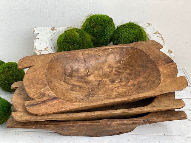 Our wooden dough bowls are hand made from Mango wood. As unique as each piece of wood, these wooden bowls will have their own special character. Beautiful as a tabletop display or for storage to hold magazines, rolled towels and more.